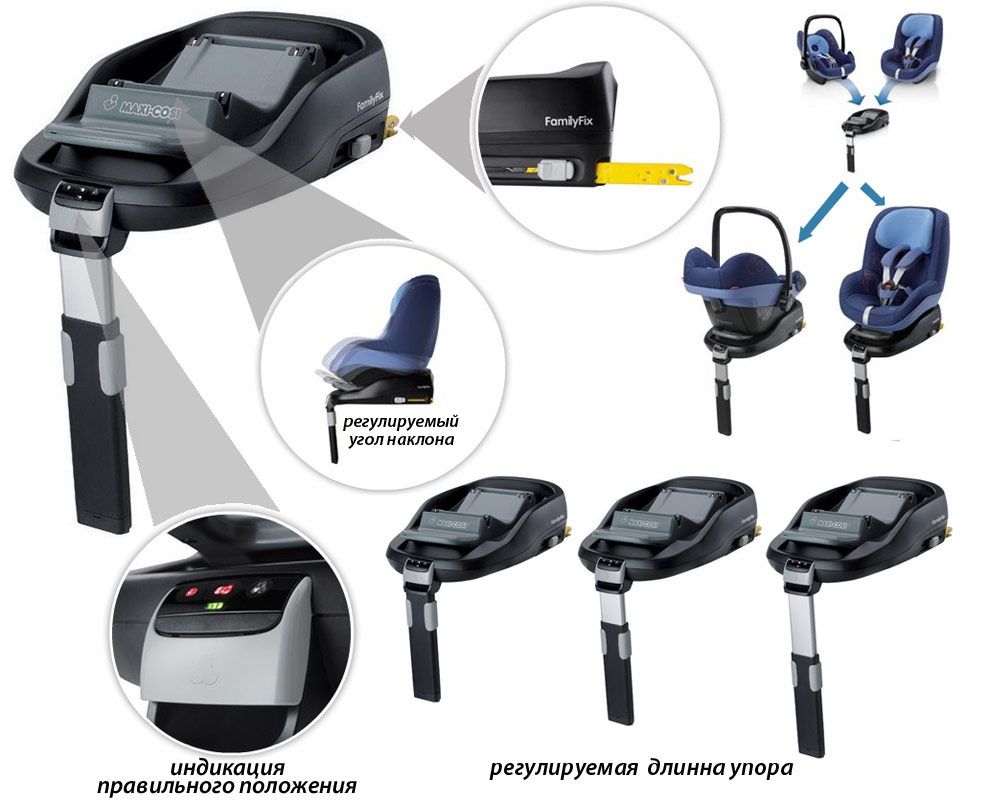 На базу можна встановлювати автокрісла Maxi-Cosi Pebble 0+, Maxi-Cosi CabrioFix 0+ і Maxi-Cosi Pearl 1+.