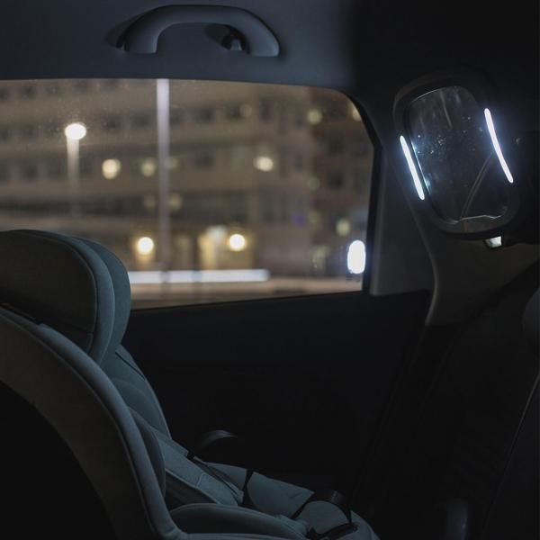 - дзеркало XL-розміру для контролю за дитиною оснащене вбудованим світлодіодом;