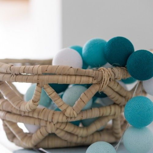 Cotton ball lights - стильна прикраса для Вашого дому. Бавовняна гірлянда з 20 кульок кольору Aqua. Нехай інтер’єр засяє новими фарбами!