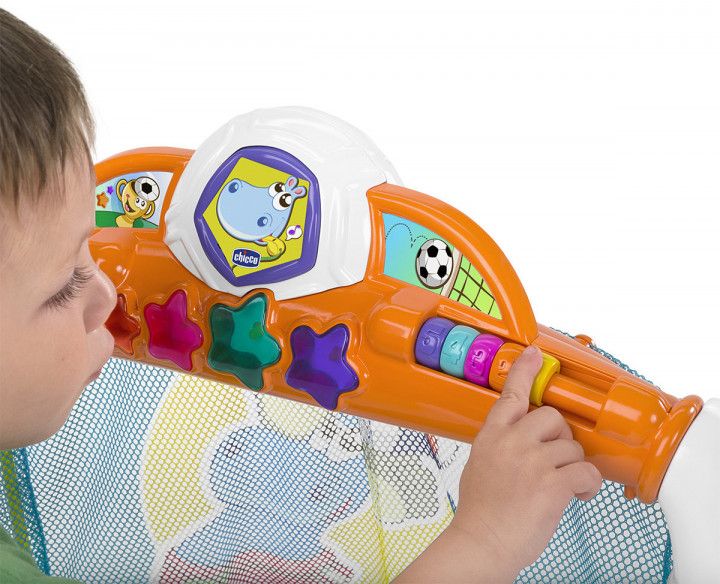 Як тільки малюк забиває гол у ворота, активізуються кумедні світлові і звукові ефекти: гра супроводжується 25 мелодіями і звуковими ефектами.