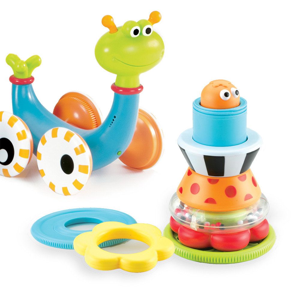 Під панциром звіра ховається пірамідка із семи частин різного кольору та форми, що стимулює тренування дрібної моторики, знайомить з новими назвами й вчить сприймати предмети у просторі. Під час їзди равлик світиться та видає різні звуки.