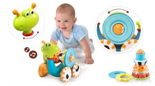 Інтерактивна каталка Музичний равлик від відомого бренду Yookidoo - чудове рішення для багатостороннього розвитку дитини. Дитина зможе самостійно запускати равлика, просто натиснувши на його хвостик.