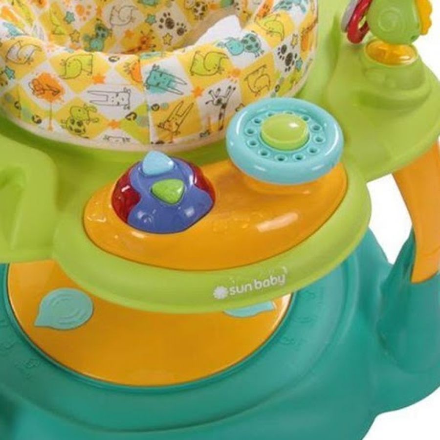Кругове обертання, рухомі іграшки, яскраві кольори, звукові і світлові ефекти стимулюють зорові, слухові і тактильні відчуття.