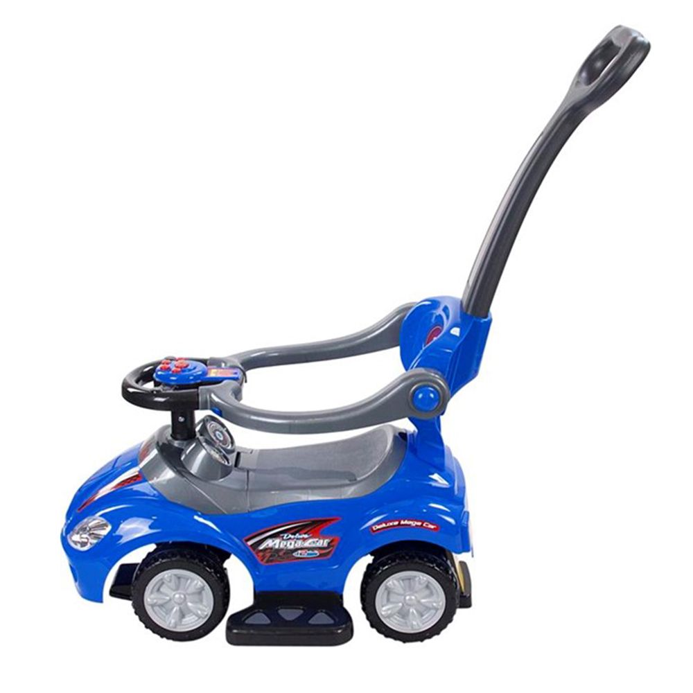 Звукові ефекти, управління кермом, багажник для іграшок, огорожа безпеки, знімна підніжка, ручка-штовхач.
