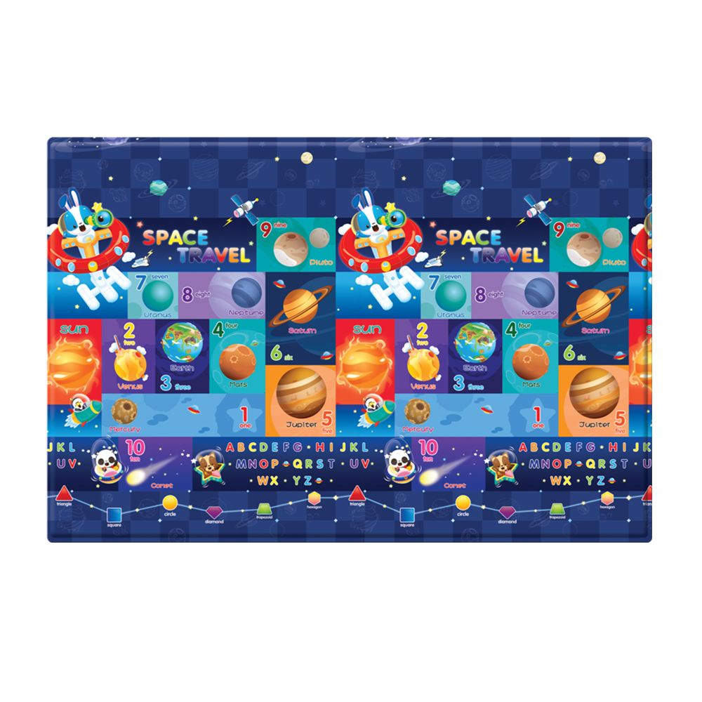 Малюнок на килимку нанесений з двох сторін, і ви можете перевертати його час від часу, показуючи малюкові різні картинки, і вивчати щось нове.
