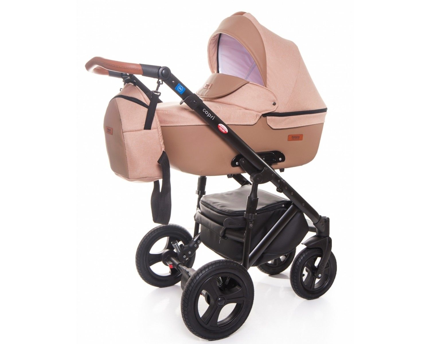 Відворот чохла на колисці зроблений таким чином, що дозволяє відвернути його і закрити люльку повністю в вітряну погоду. Дизайн коляски відповідає європейським стандартам якості.
