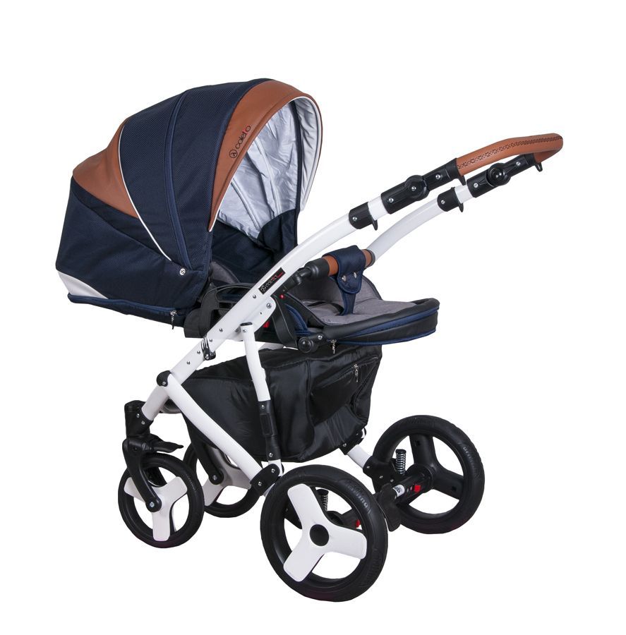 Елегантна функціональна якісна універсальна коляска Coletto Florino від польського виробника. Верх - поєднання еко-шкіри і тканини. Комплектація 2в1, але можна додатково встановлювати автокрісло (купується окремо).