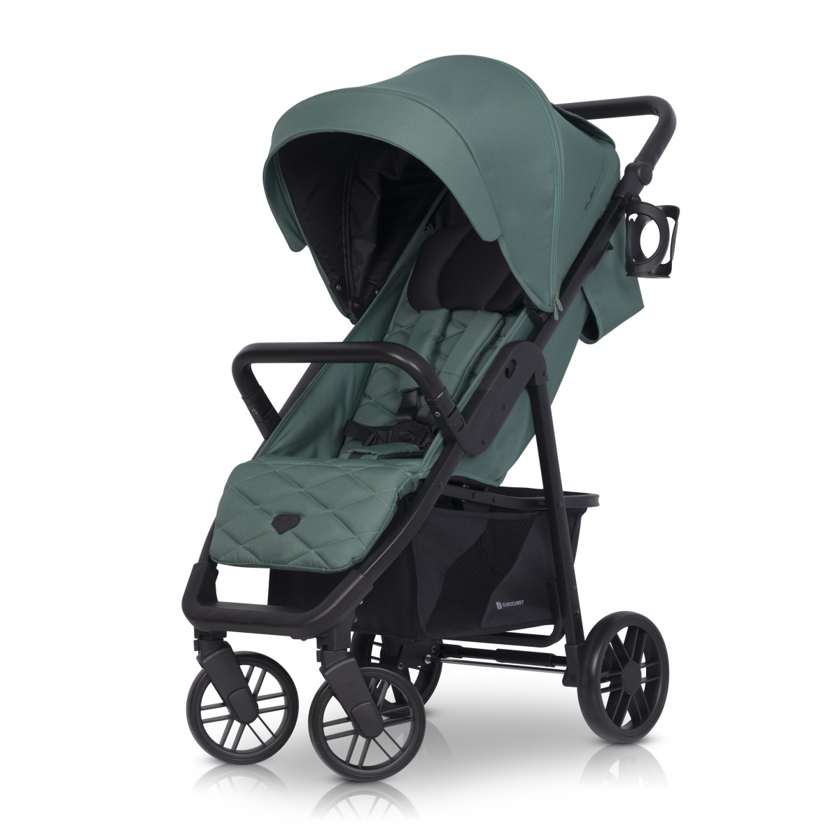 Коляска Euro-Cart Flex укомплектована: москітною сіткою, дощовиком, подушкою, підсклянником, містким кошиком для покупок, захисним чохлом на ніжки.