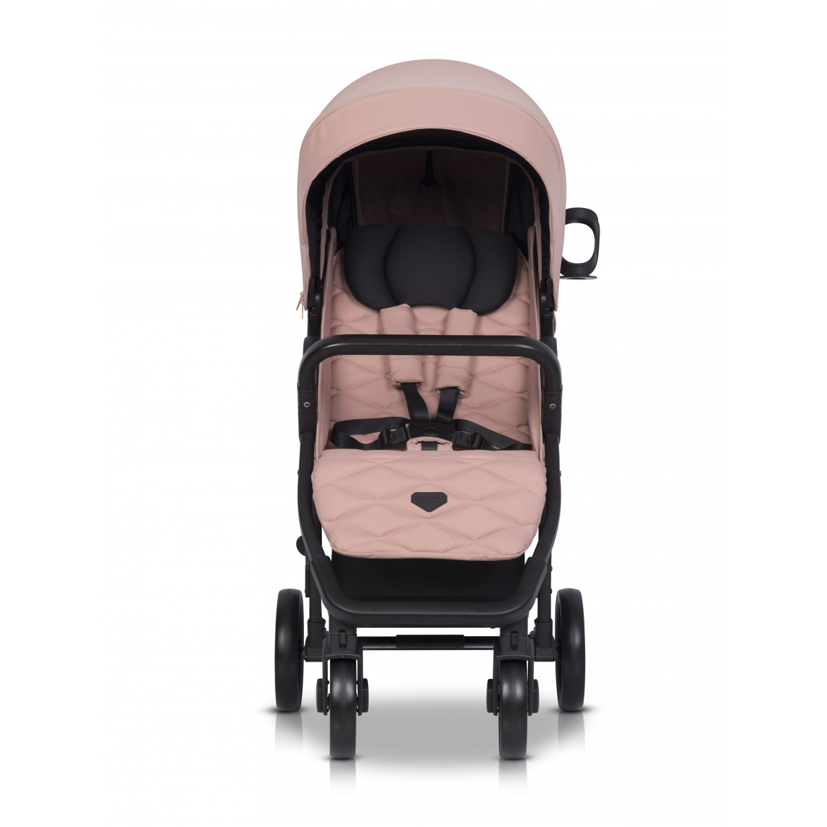 Протиударна подушка подбає про правильне положення голови дитини під час використання коляски, збільшуючи комфорт під час водіння. Просторий капюшон має вбудовану додаткову панель, що дозволяє її подовження та сонцезахисний козирок. Також є вентиляційне вікно. Рама виготовлена ??з легкого алюмінію в поєднанні з пластиком, також регульована ручка і захисний бампер знімний покриті нековзним матеріалом, що значно спрощує управління однією рукою. Передні колеса поворотні, з можливістю блокування руху вперед, і амортизацією значно полегшують рух по нерівних поверхнях.