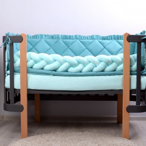 Бортик-коса - стильна, м'яка, приємна на дотик захист, не обмежує доступ повітря в ліжечко, не займає багато місця. Може бути використана для декору дитячої кімнати або ігор. До народження малюка також можна використовувати як зручну подушку для вагітної.