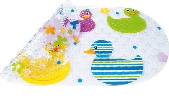 Завдяки рельєфній поверхні, дитячий килимок для ванної забезпечує додатковий масаж малюка. Гарний і привабливий дизайн з усміхненими качечками, слухаючими музику, додатково розважає малюка і створює йому гарний настрій під час купання.