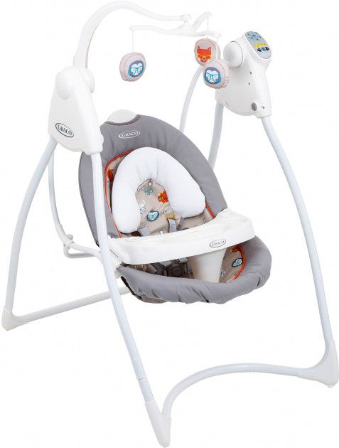 Пластиковий столик служить також як захисний бампер. Завдяки функції гойдання, музиці та звукам імітації природи Graco Lovinhug допоможе вашому малюкові розвивати слух, зір, дотик.