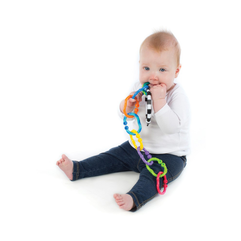 Ланцюжок складається з рельєфних кілець, служить масажером для чутливих ясен малюка на різних стадіях розвитку зубів.
