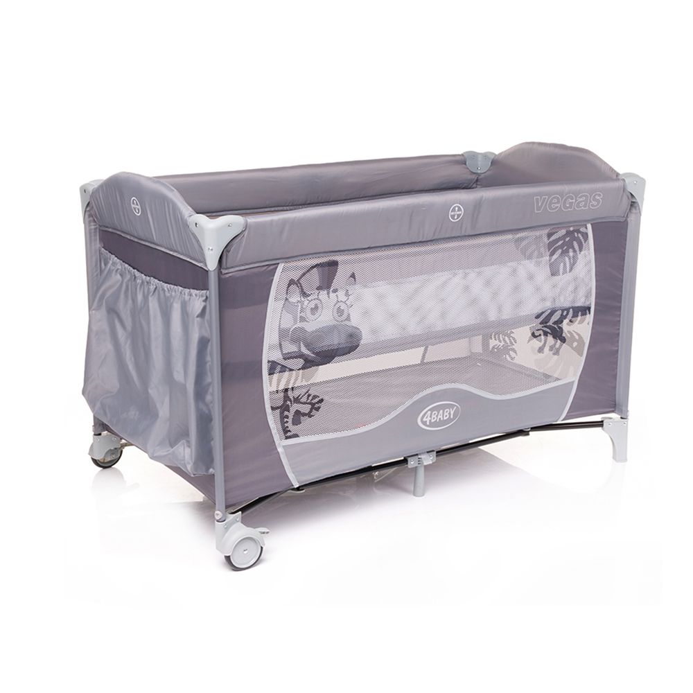 Манеж Vegas достойно оцінять активні молоді батьки, які віддають перевагу подорожам з маленькими дітьми. Vegas стійкий і надійний, легко і компактно складається в міцну конструкцію з безпечних для здоров'я малюка матеріалів. Бічні стінки моделі виконані з сітки, що дозволяє забезпечити необхідну циркуляцію повітря, і дозволить батькам постійно тримати дитину в полі зору. Зручно і те, що днище можна встановлювати в двох позиціях по висоті, в залежності від потреб та віку дитини, а бічний вхід на блискавці порадує дитину, що підросла, дозволяючи їй відчувати себе самостійною. До того ж 4baby Vegas легко переміщується без необхідності складання, досить скористатися двома коліщатками з практичним стопором.