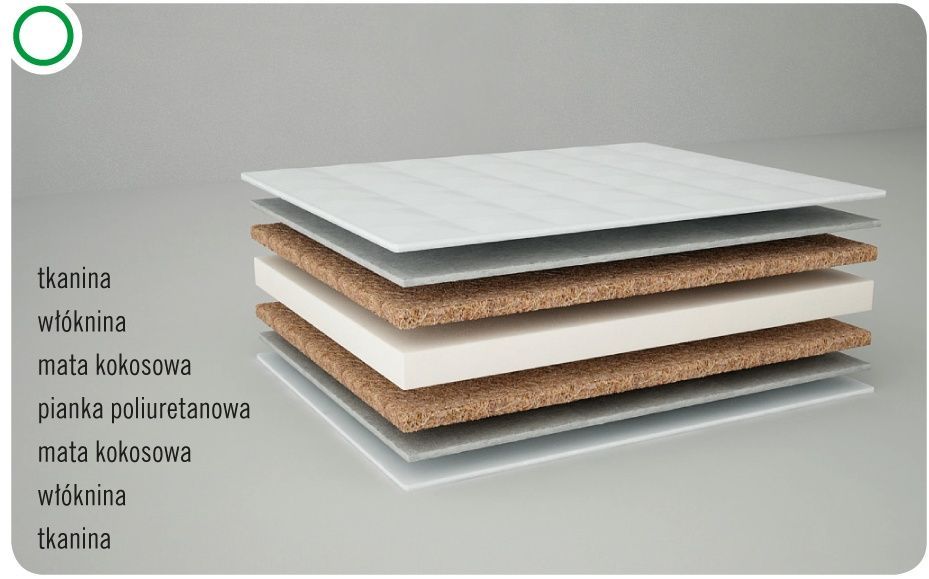 Матрац "Кокос-поролон кокос» - це двосторонній матрац, наповнення якого складається з двох кокосових плит, між якими знаходиться шар пінополіуретану.