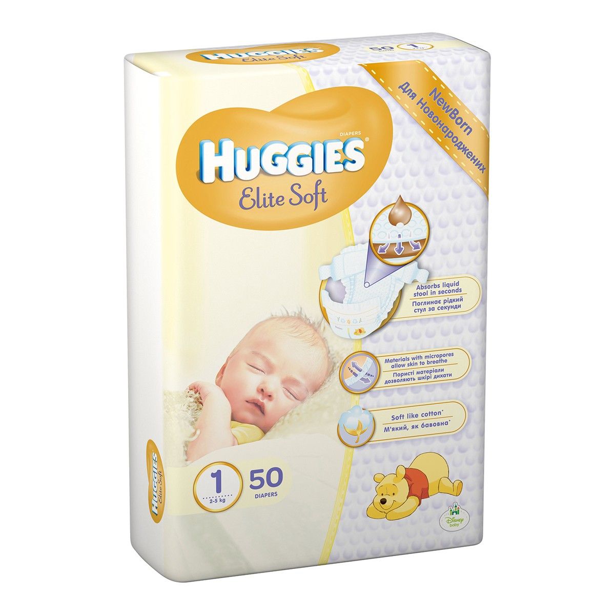 Підгузки Elite Soft для новонароджених з використанням неймовірно м'яких матеріалів всередині і зовні.