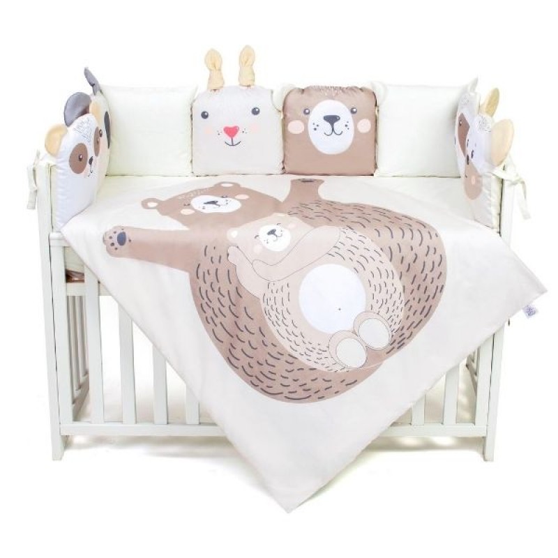 Підодіяльник і чохли бампера на блискавці - зручні і практичні у використанні. Наповнювач бампера - холлофайбер - гіпоалергенний, добре тримає форму, а подушки і ковдри - soft fiber - м'який і приємний на дотик, забезпечує дихаючі властивості і терморегуляцію. Ковдра простьобана, що забезпечує збереження форми виробу після прання.
