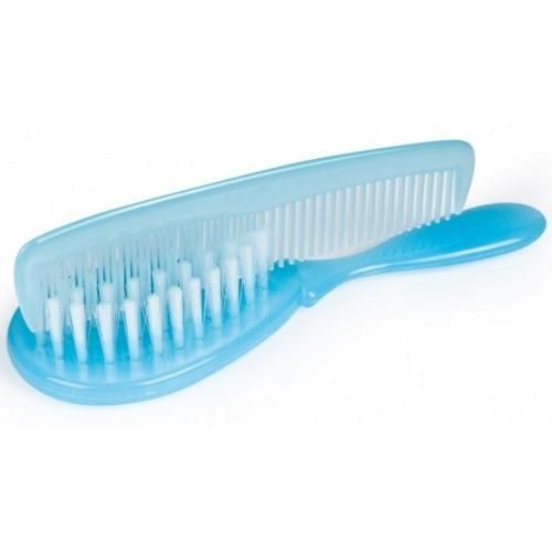 Безпечна, щітка-гребінець з жорсткою нейлонової щетини призначена для розчісування волосся дитини. Вона м'яко масажує голову малюка і не електризує волосся.