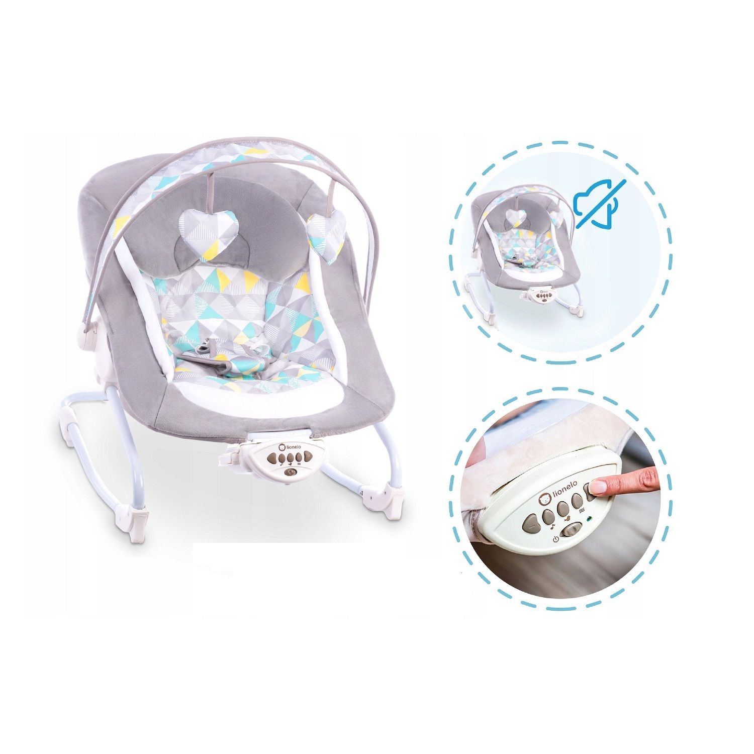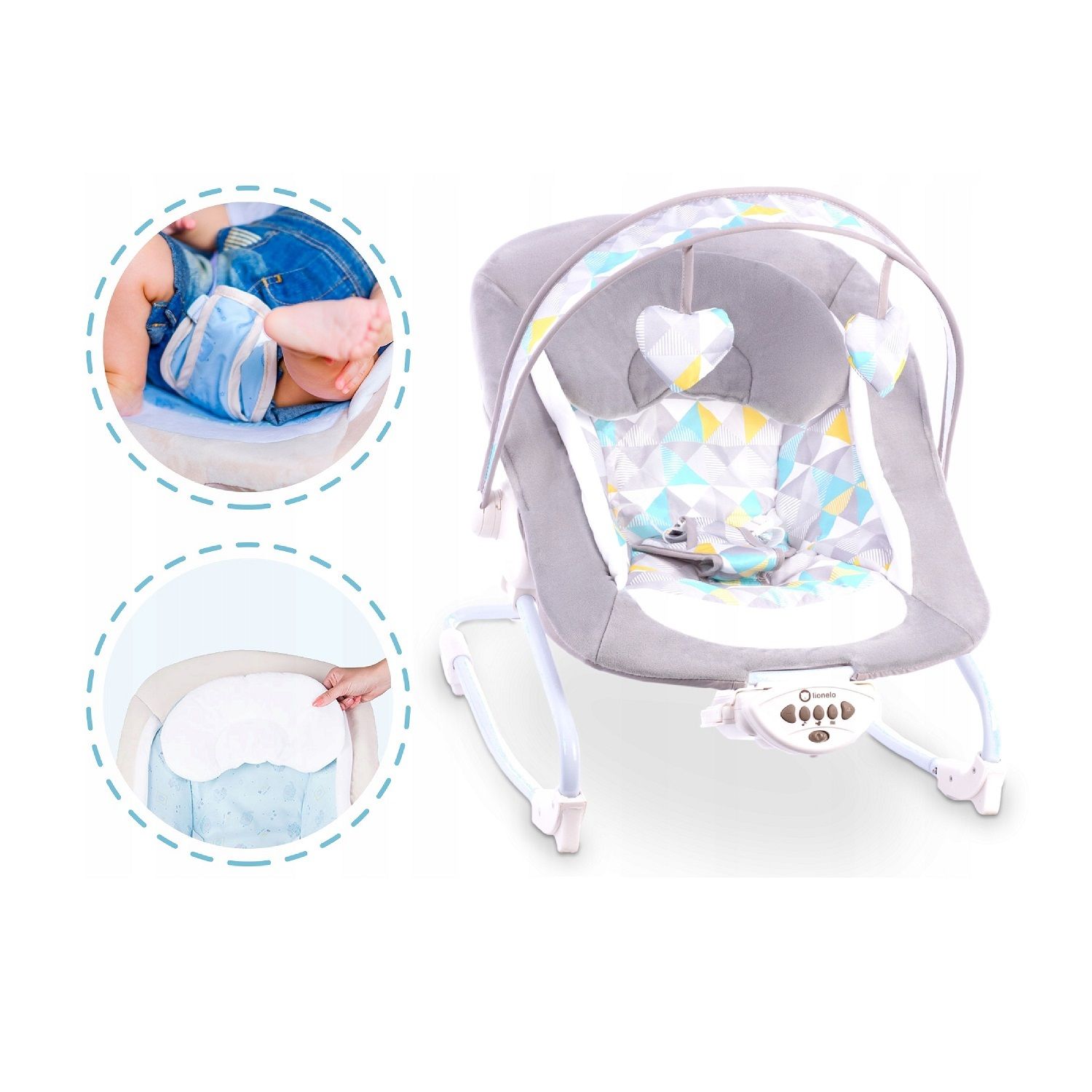 Комфортний шезлонг для малятка з м’якою подушкою. Ви можете вмикати наявну в пристрої музику для кращого засинання дитини або веселих ігор. Дуга з іграшками регулюється по росту крихітки. Особливість цього шезлонга у трьох режимах вібрації, інтенсивність якої датчики самі підбирають відповідно до ваги малюка. Спинка регулюється для максимального відпочинку дитини.