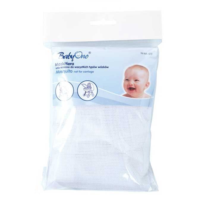 Універсальна москітна сітка для коляски BabyOno надійно захищає дитину від укусів комарів і інших комах.