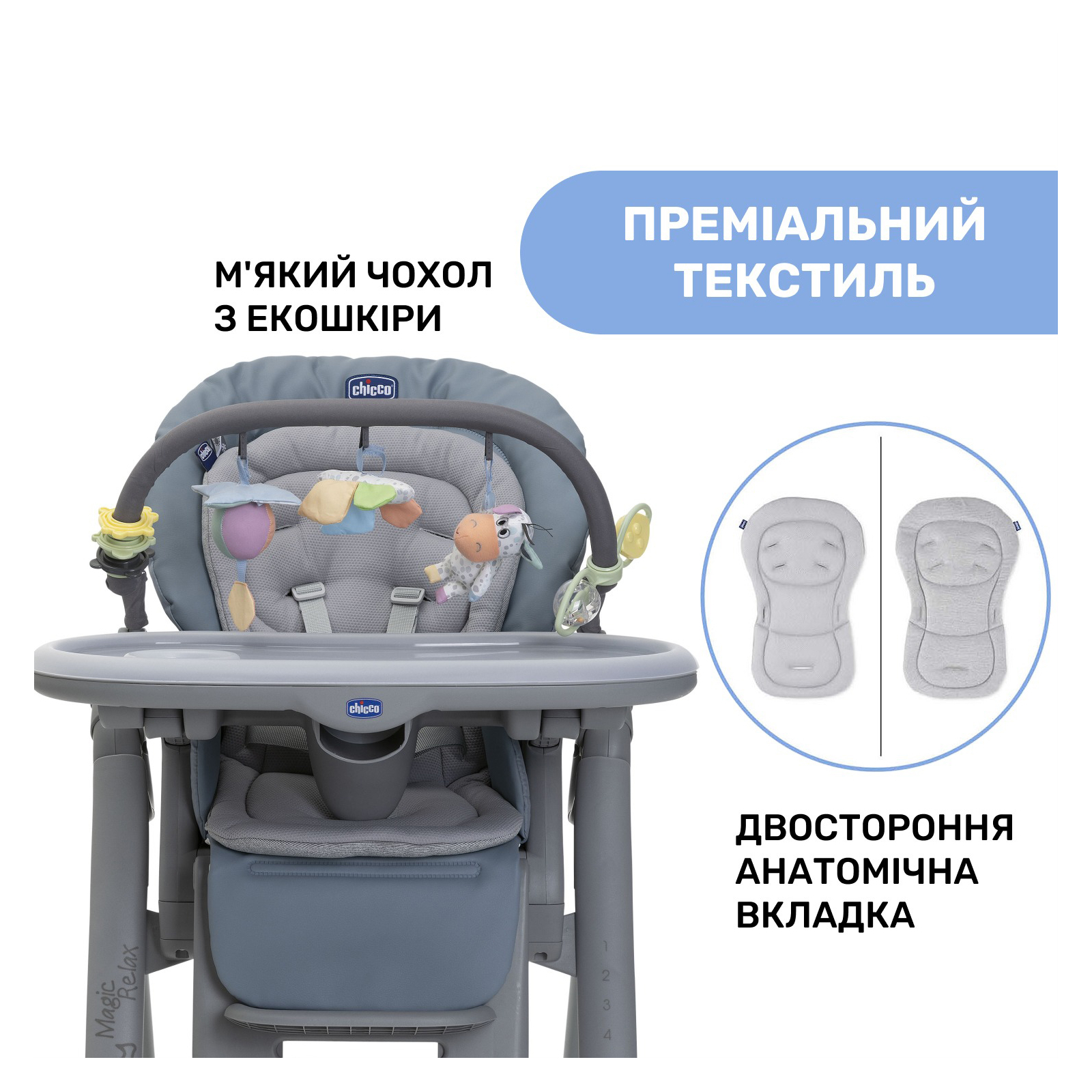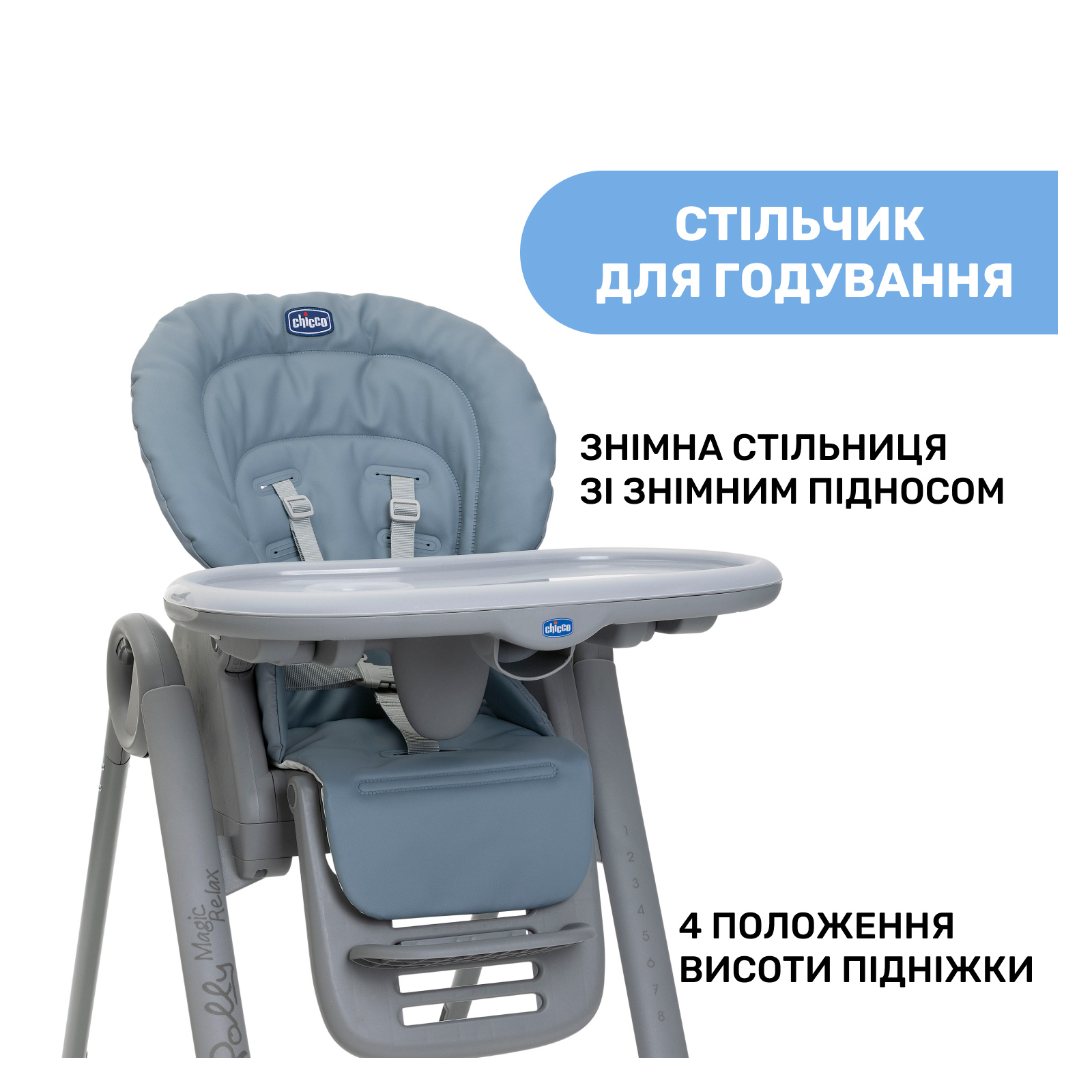 Polly Magic Relax - це стільчик, який забезпечує високий рівень комфорту на кожному етапі зростання і розвитку малюка від народження до 3 років. Завдяки сучасному і модному дизайну, він відмінно впишеться в інтер'єр кухні.