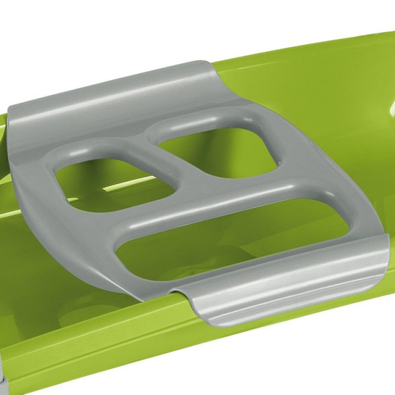 Відділення для губки і мила, заглушка і шланг для зливу води, 2 ящика для пляшечок, 2 коліщатка з гальмами, ручки для перенесення.